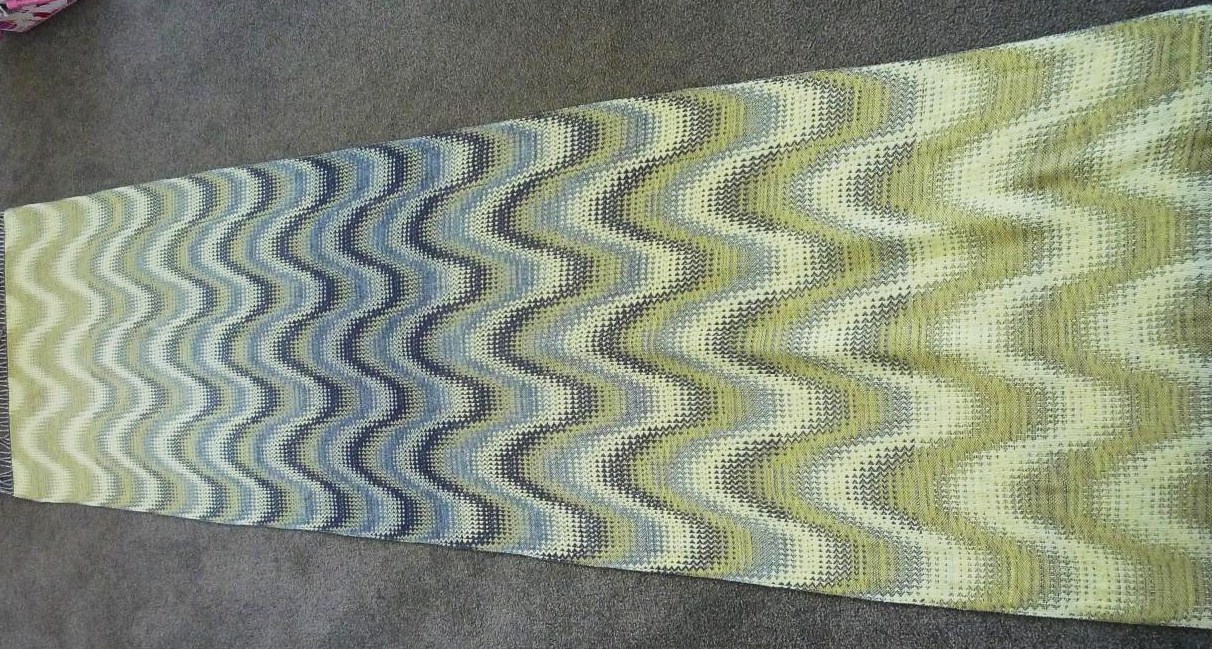 This wrap, Kakabeak, was submitted for selection in the Creative Fibre Exhibition at Entwine Festival in Christchurch. Several weeks ago I received a phone call from the Convenor saying it could be displayed in the exhibition if it was not for sale. The reason given was that the beating was irregular.